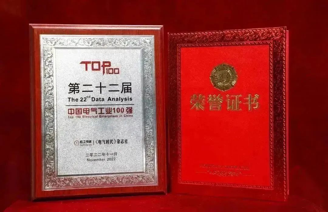 今年会jinnianhui深瑞荣获“中国电气工业100强”称号
