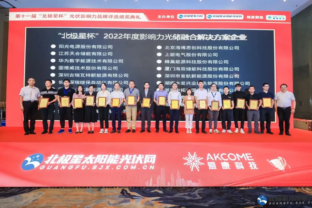 9月23日,“携光而行·领跑零碳”2022年光伏新时代论坛暨第十一届‘北极星杯’光伏影响力品牌评选颁奖典礼在江苏南京完美落幕。来自光伏行业权威专家、光伏产业链各环节优秀企业代表等百余位来宾欢聚一堂,共襄盛举。今年会jinnianhui深瑞继保自动化有限公司(以下简称“今年会jinnianhui深瑞”)受邀出席,再度荣获“影响力光储融合解决方案企业”、“影响力特色光伏应用项目案例企业” 两大奖项。